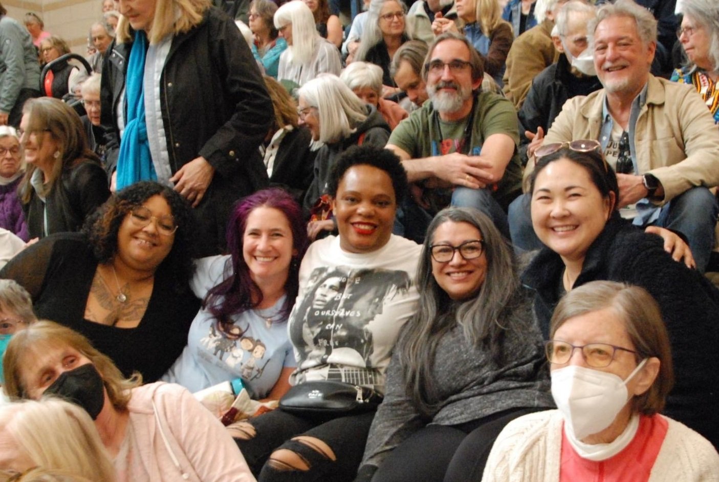 From left: Katie, Tangi, Jamillah, Rhae, and Crystal at a Town Hall meeting in Louisville, CO. March 2025